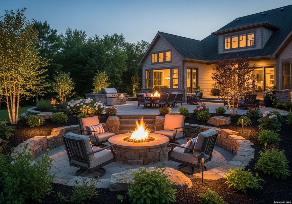 A custom fire pit naturally becomes a social gathering spot. It encourages people to come together, relax, and interact. The warm glow of the fire creates a cozy ambiance that fosters conversation and connection. It's an ideal setting for hosting parties, family get-togethers, or casual hangouts with friends. With hardscape design in Hudson from Benninger Landscaping, you can create an outdoor space that is perfect for entertaining.